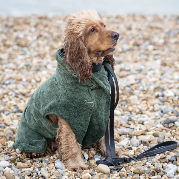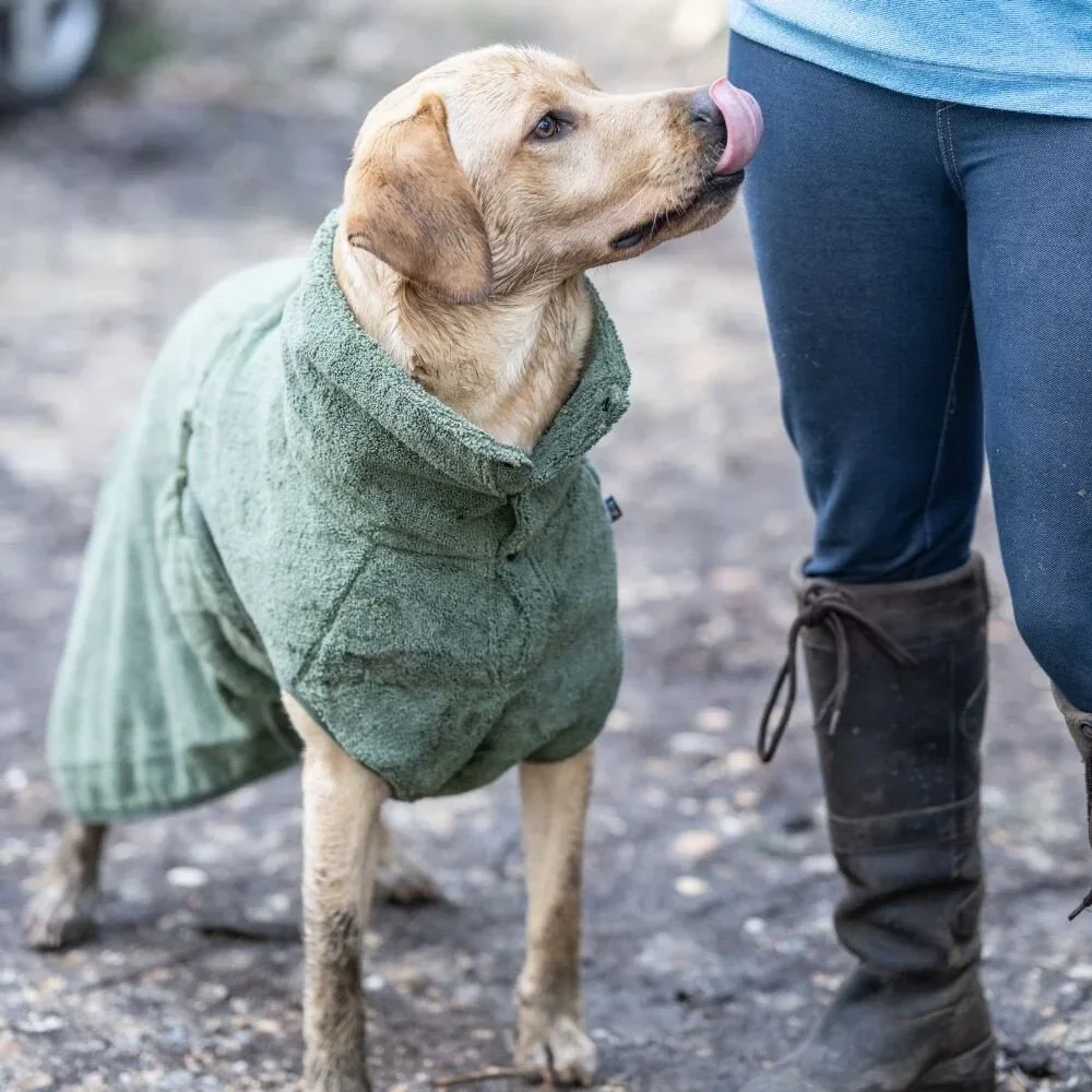 Deze badjas van gerecycled polyester is een ecologische maar ook praktische keuze voor het dagelijkse leven van je hond. Als je huisdier niet genoeg geduld heeft om stil te blijven zitten bij het drogen van de vacht - of als je gewoon tijd en moeite wilt besparen, of vloer en meubels wil beschermen tegen waterspatten - wikkel dan een badjas om de hond na een zwempartij of een wandeling in de regen.